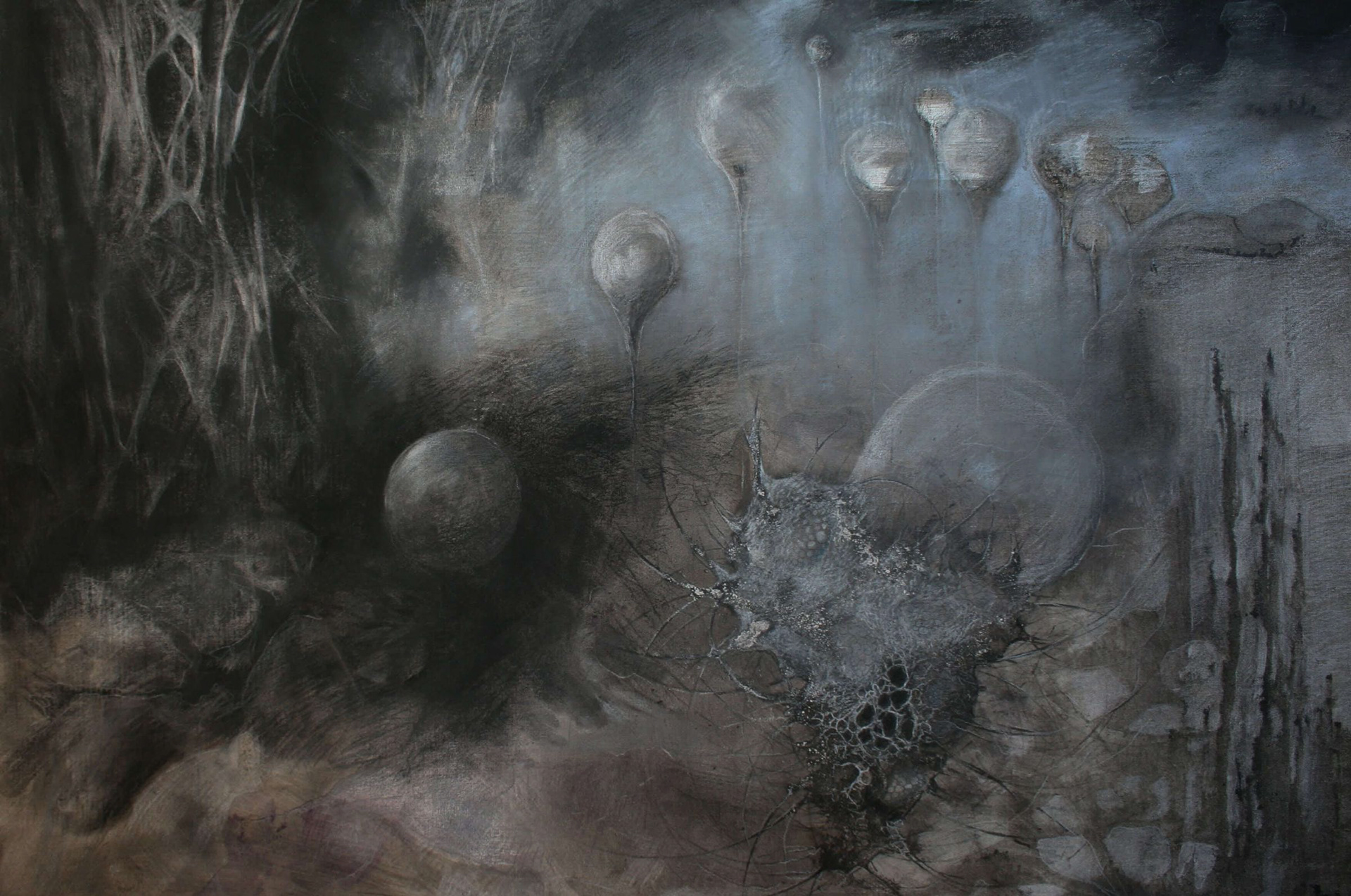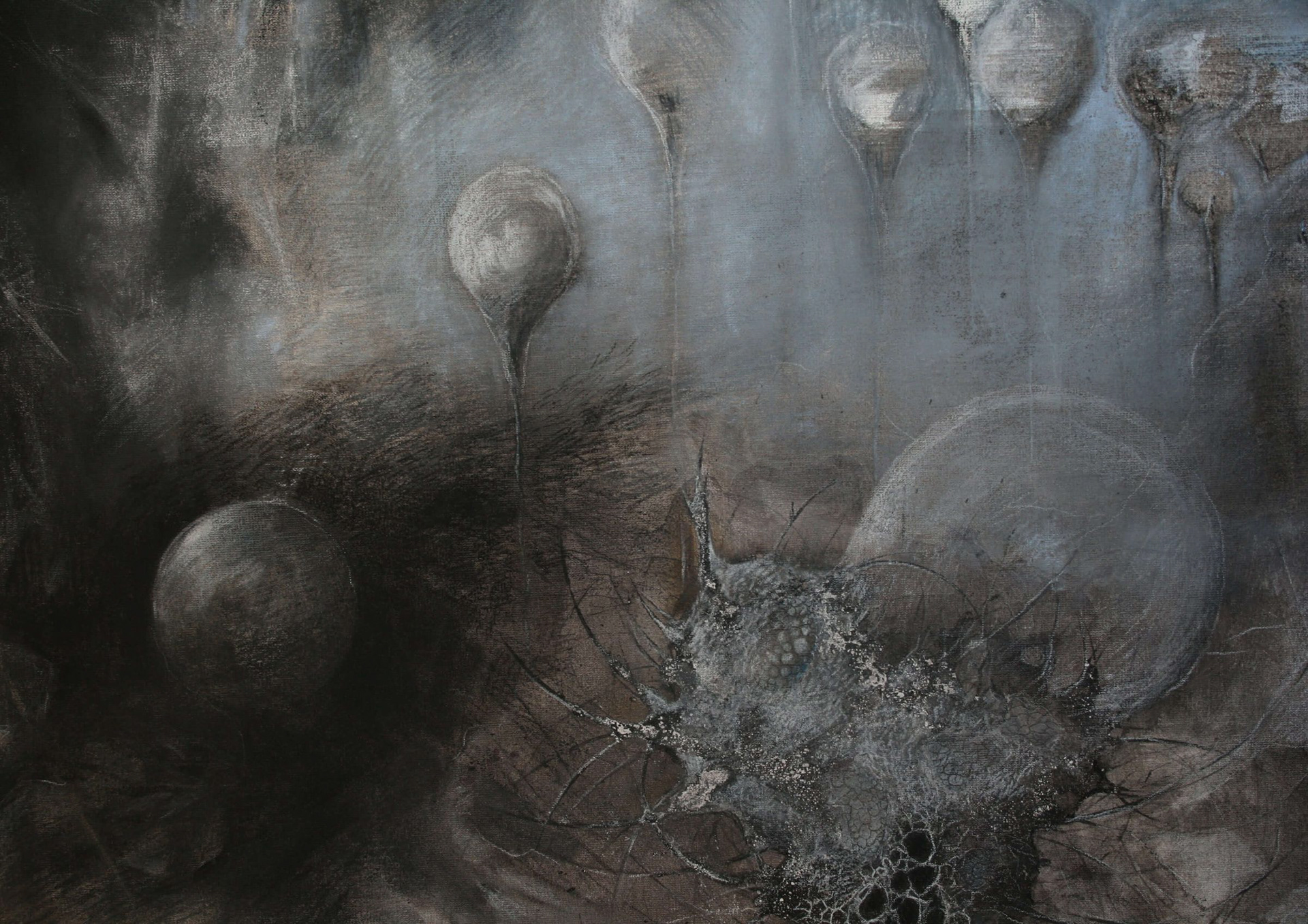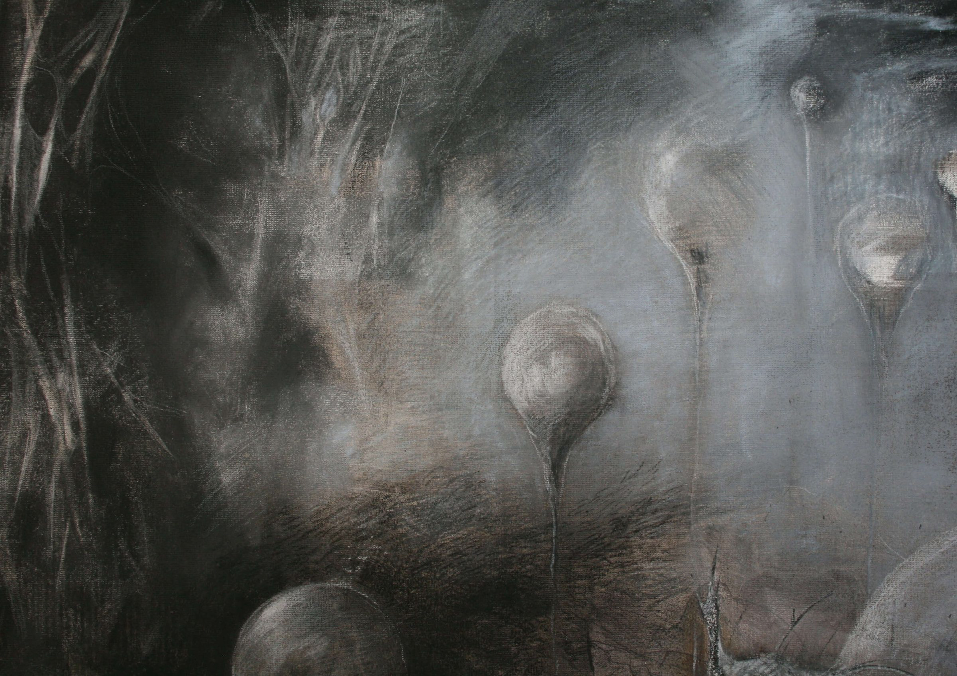 Coal, Canvas on board, Oil painting, Dry pastel, Crayon