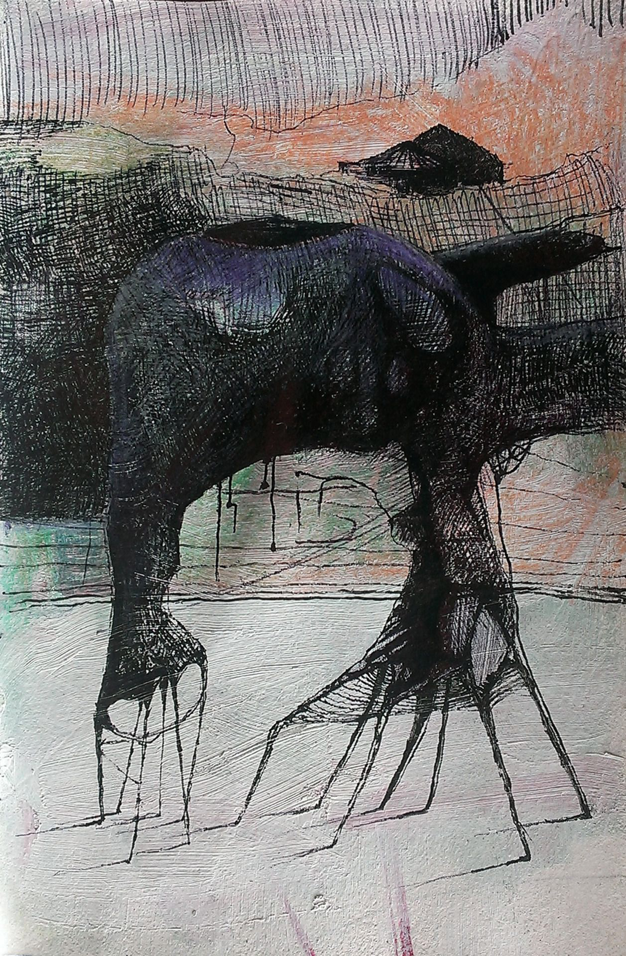 Crayon, Pen, Acrylics